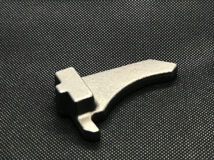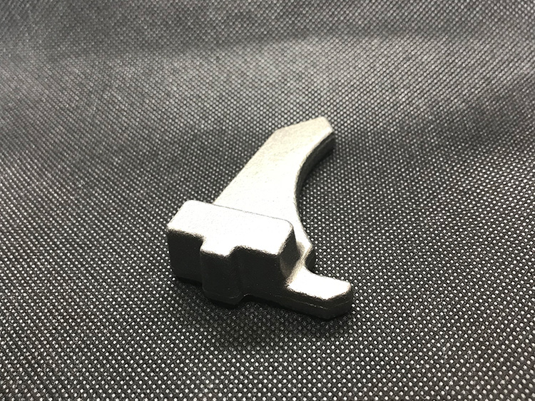 詳しくお話を伺うと、本部品は複雑な形状のうえ小物であるため、鍛造加工+切削加工で仕上げていたそうです。